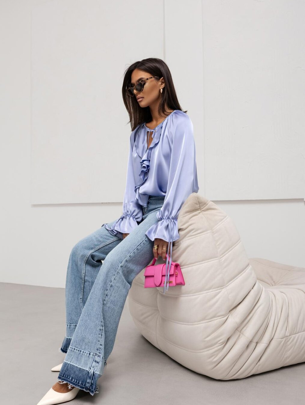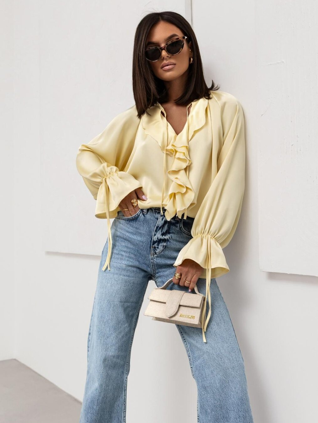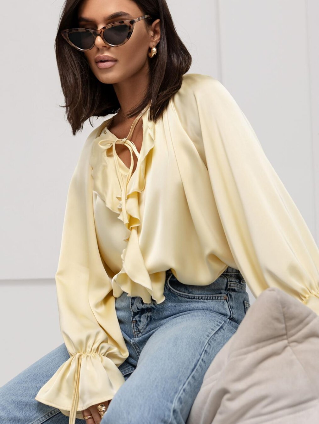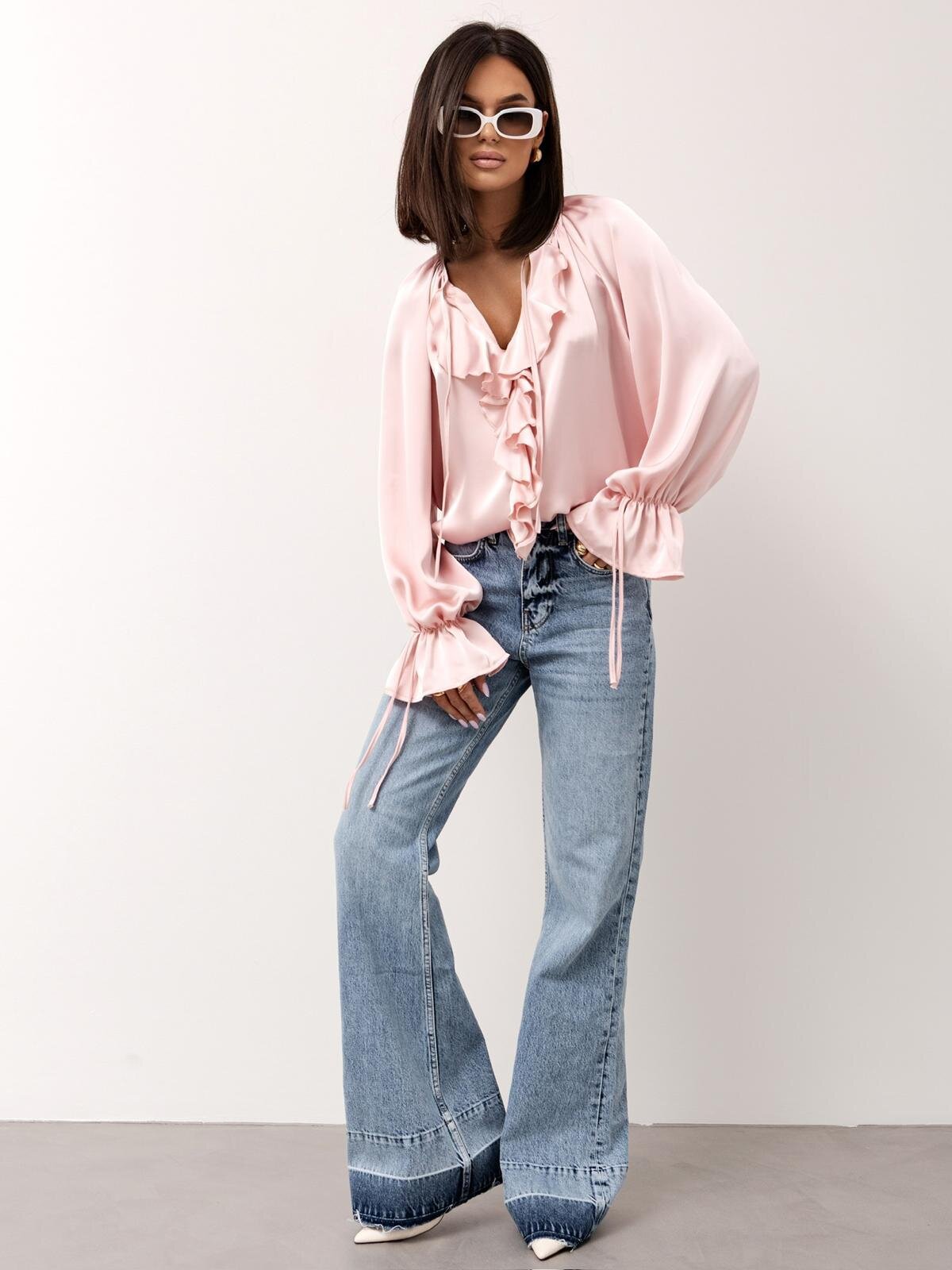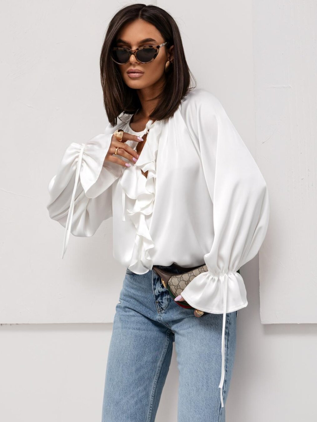 Cămașă de damă cu mâneci evazate, cu volane și șireturi
