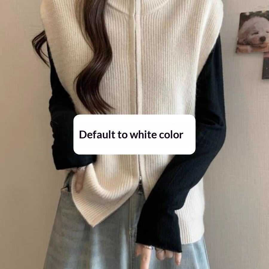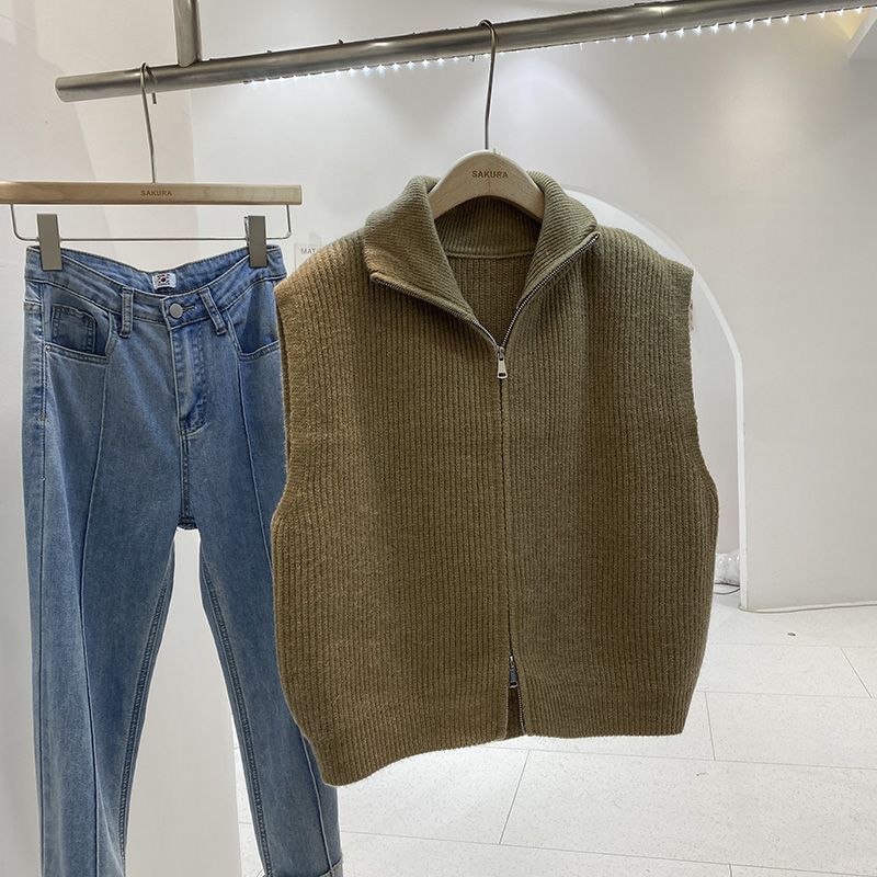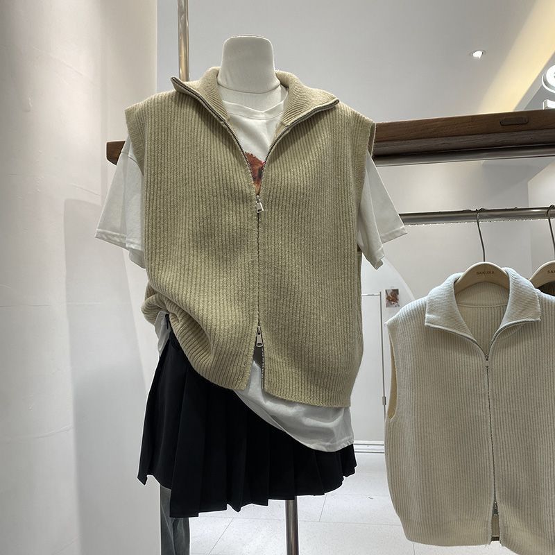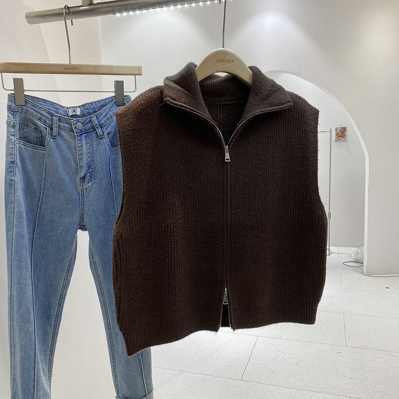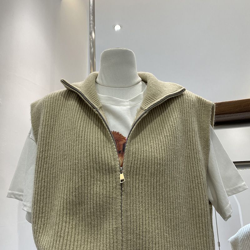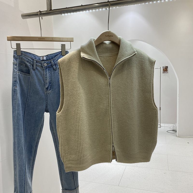 Vestă tricotată cu fermoar, lejeră, de culoare uni, casual, pentru purtare în straturi