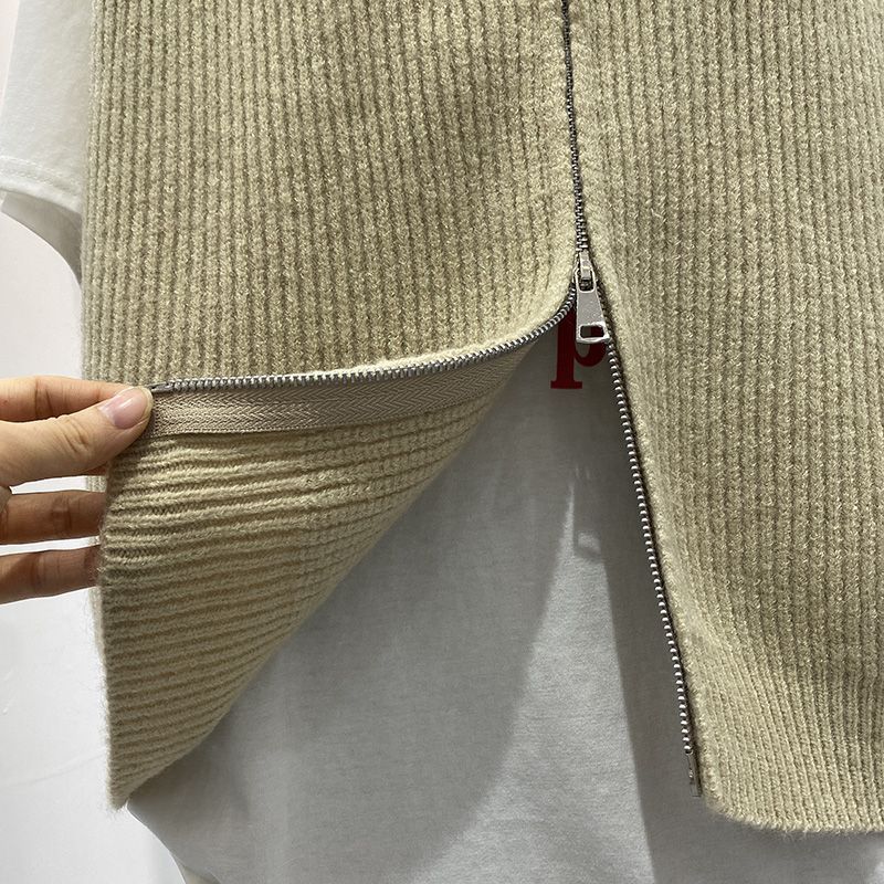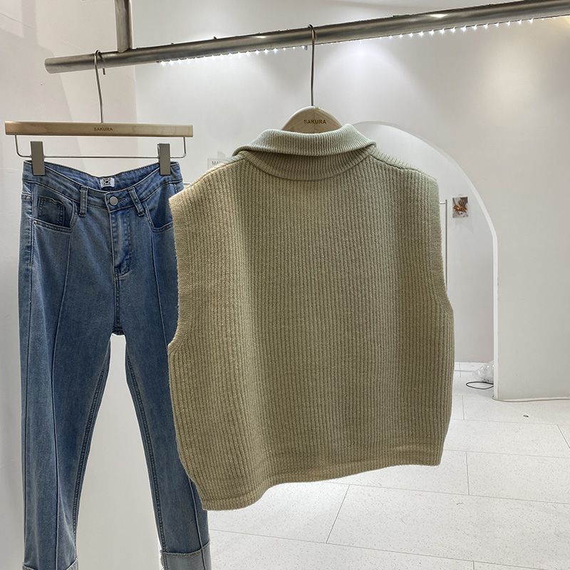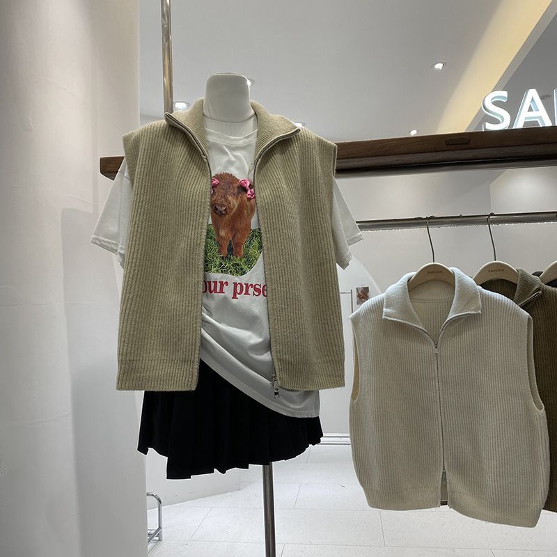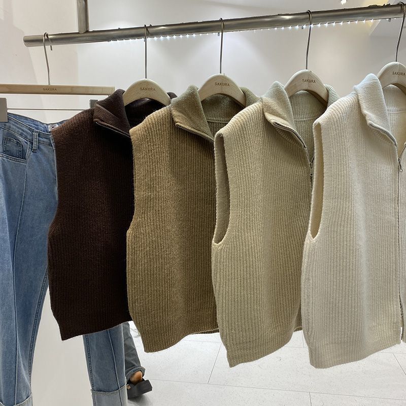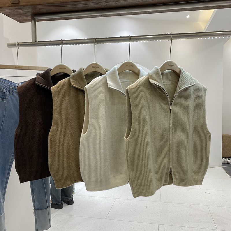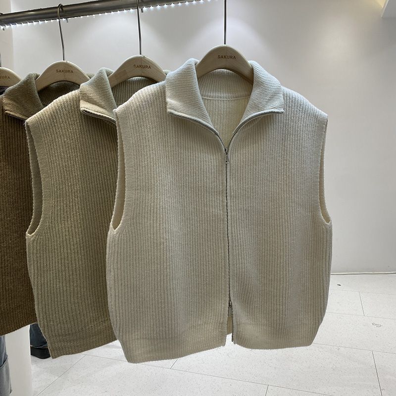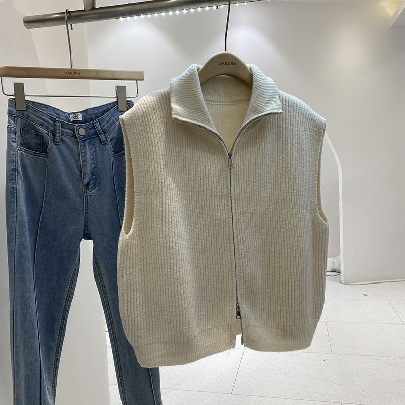 Vestă tricotată cu fermoar, lejeră, de culoare uni, casual, pentru purtare în straturi