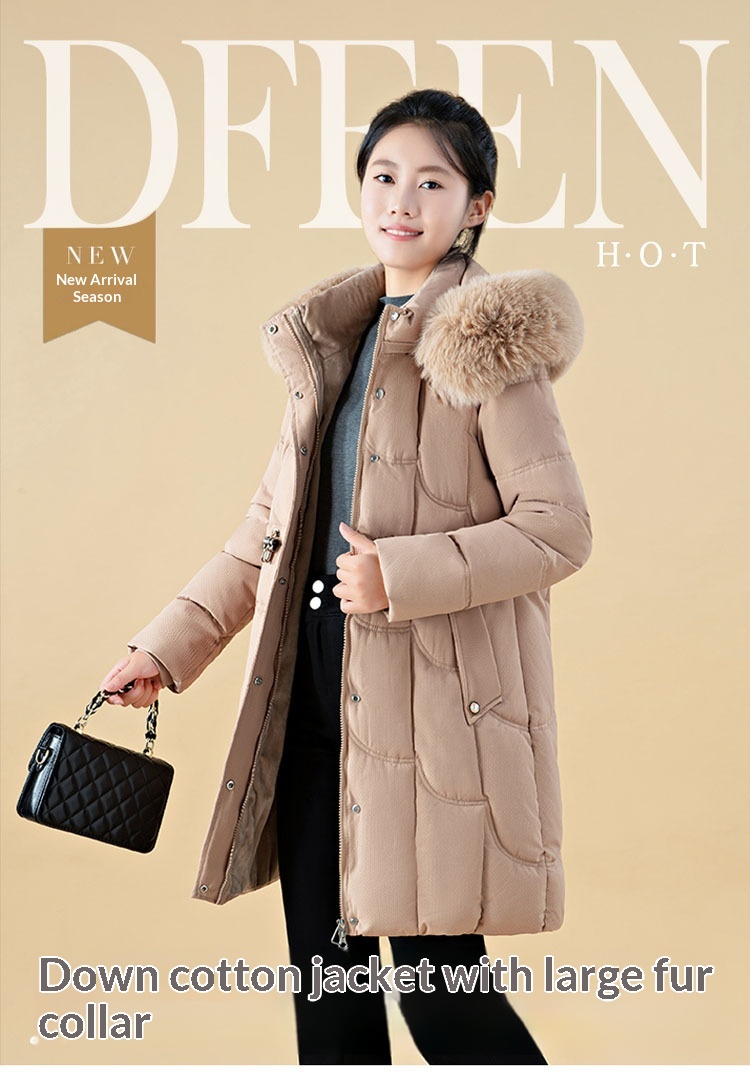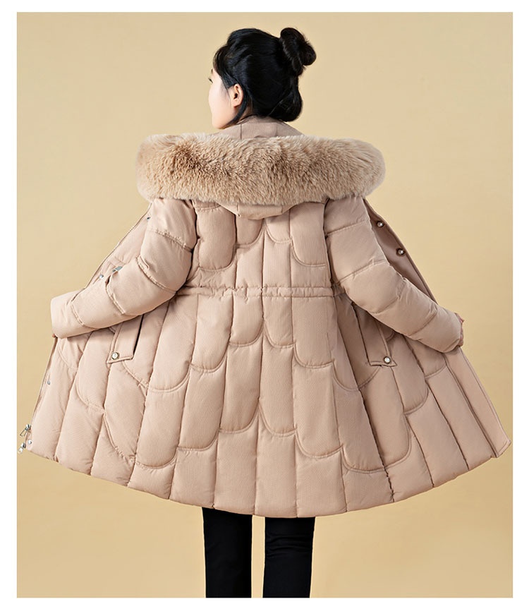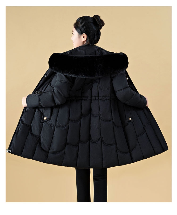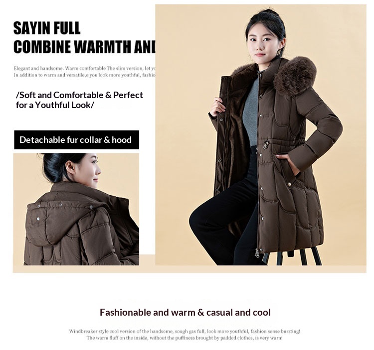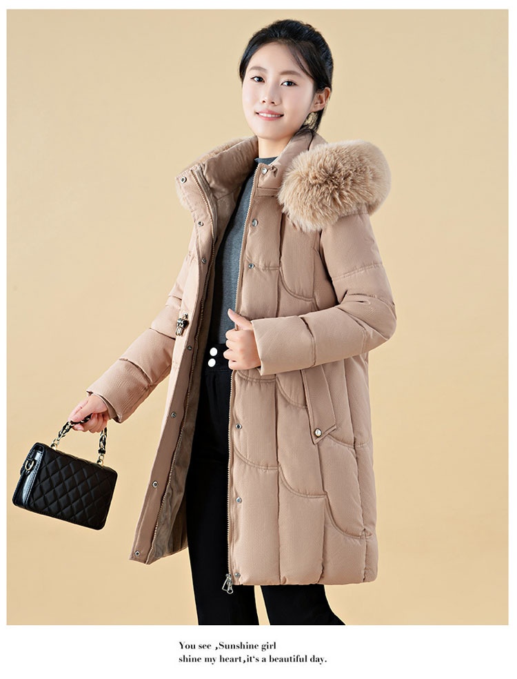 Jachetă de damă cu puf, lungime medie, croială lejeră