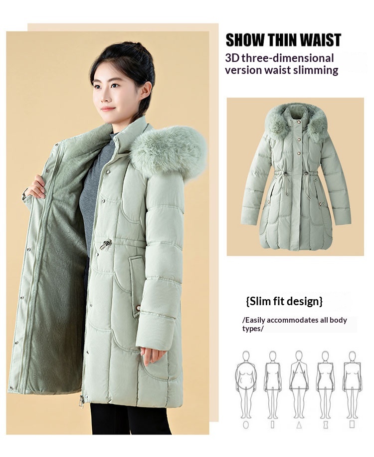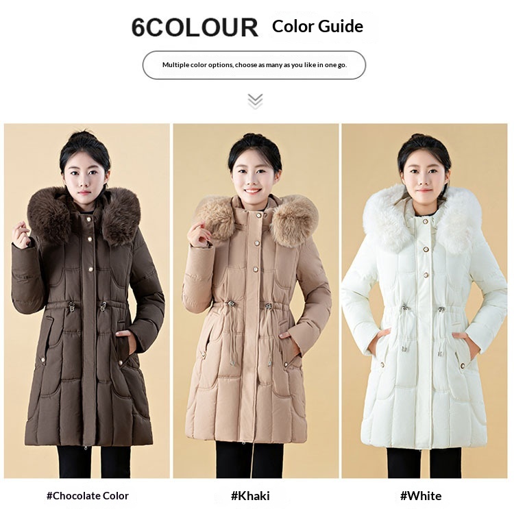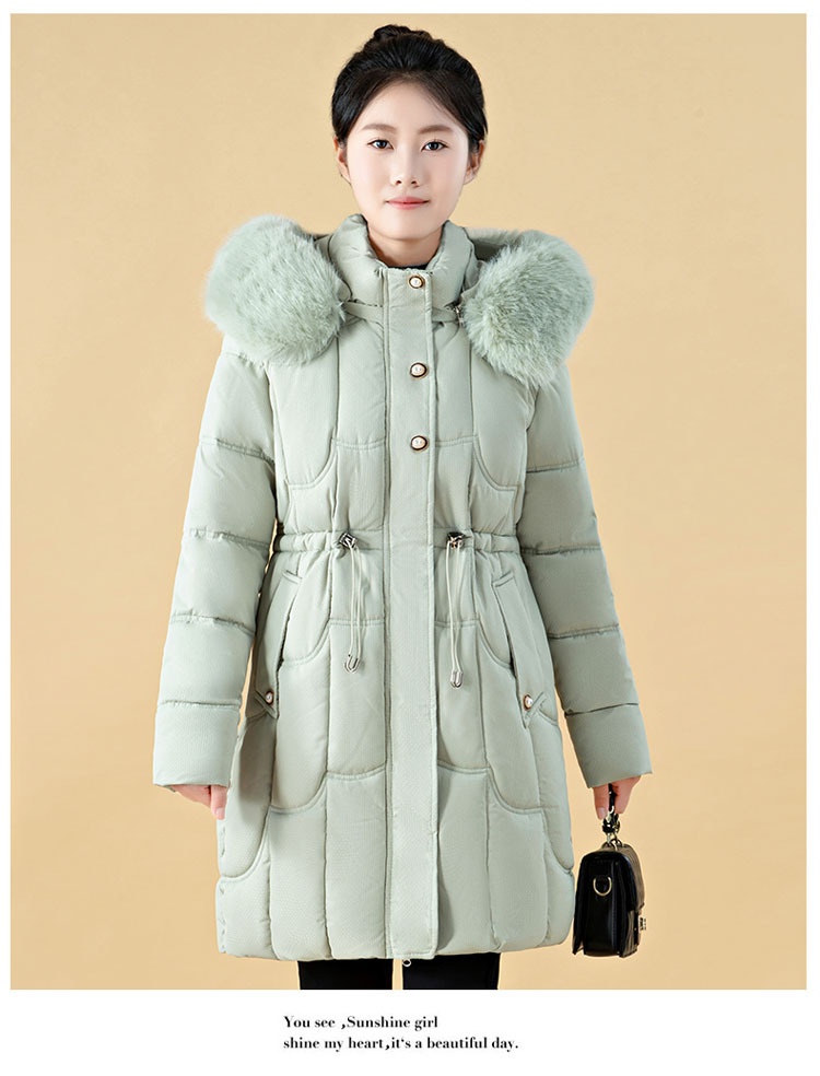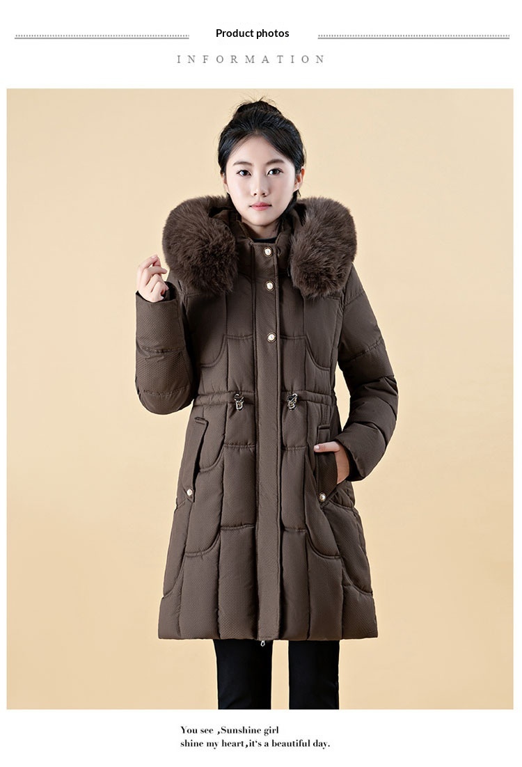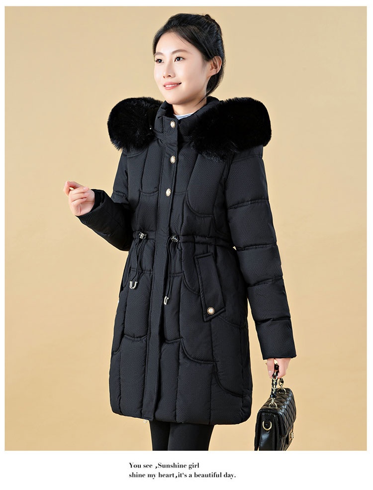 Jachetă de damă cu puf, lungime medie, croială lejeră