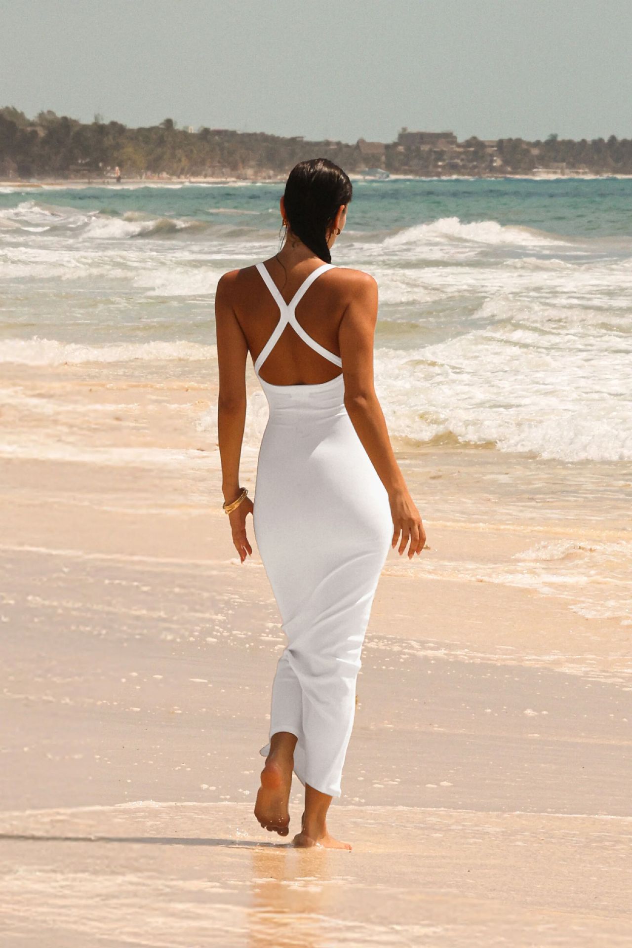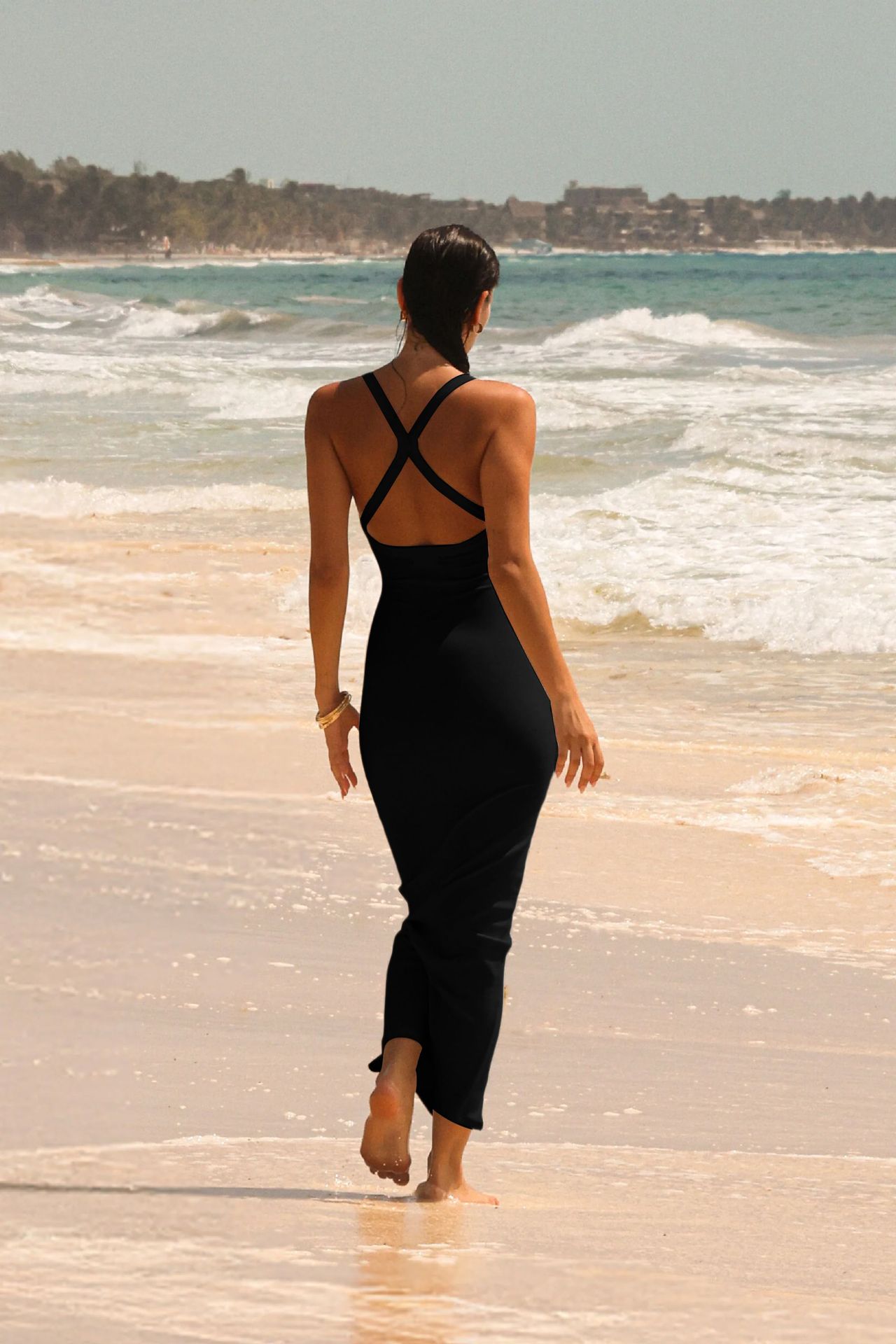 Rochie de damă sexy, slim fit, spate fără bretele.