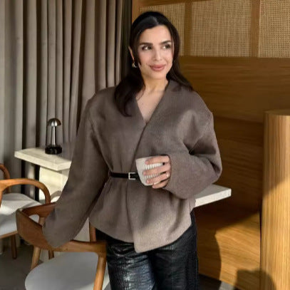 Top elegant cu croială lejeră, cu decolteu în V, pentru femei