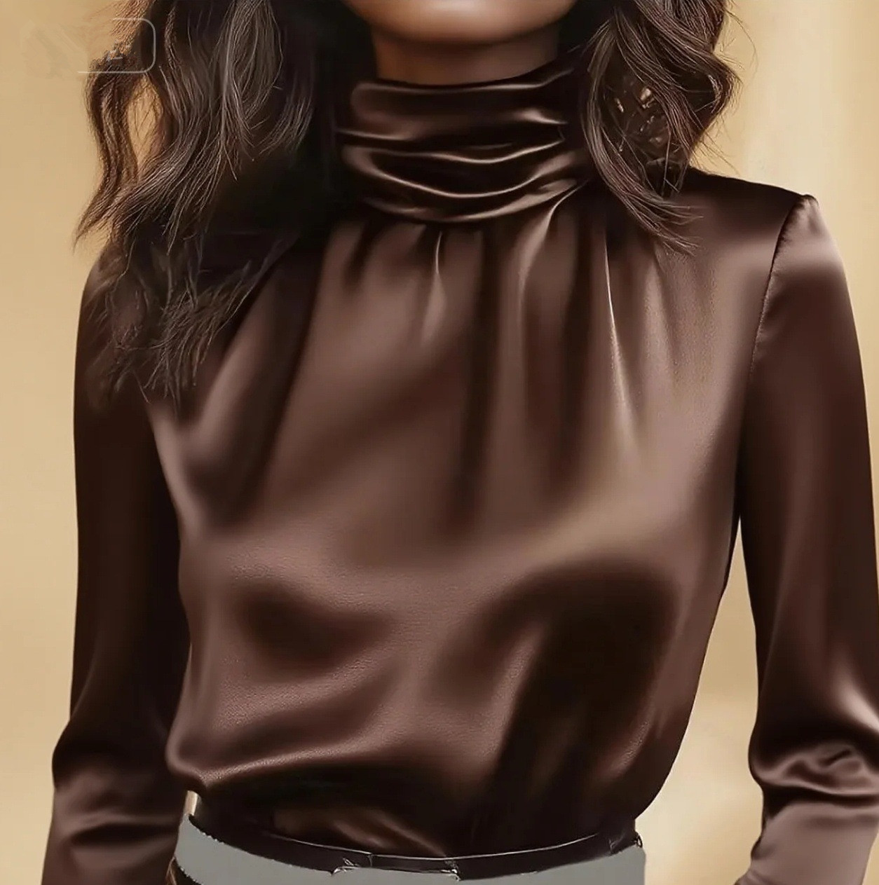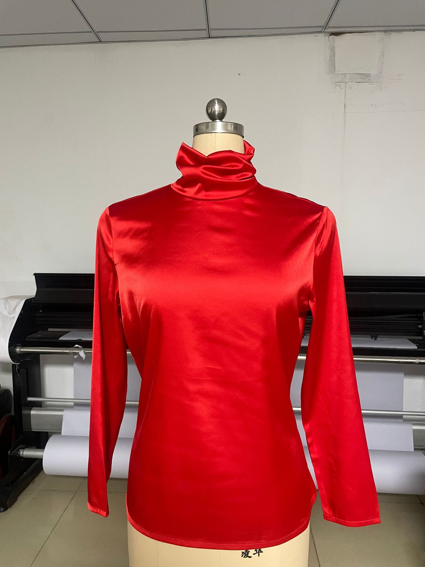 Tricou nou pentru femei, cu mânecă lungă, cu guler înalt, stil retro simplu.