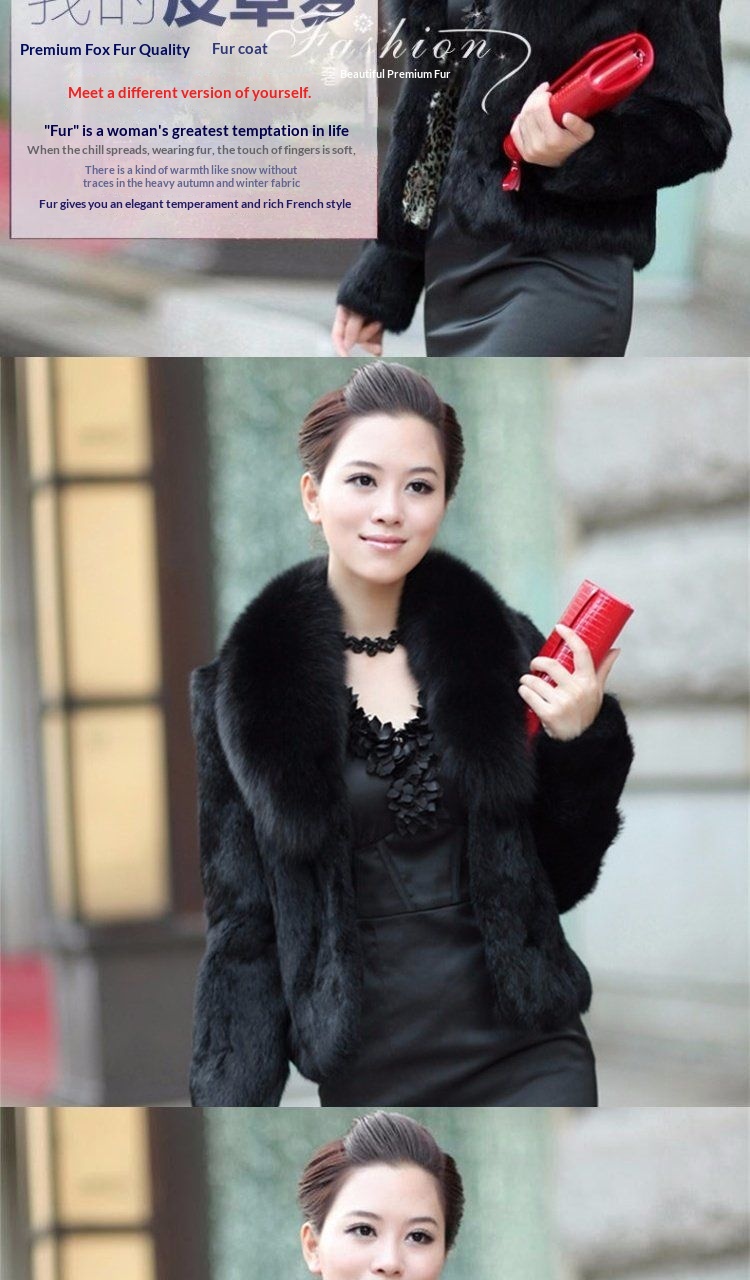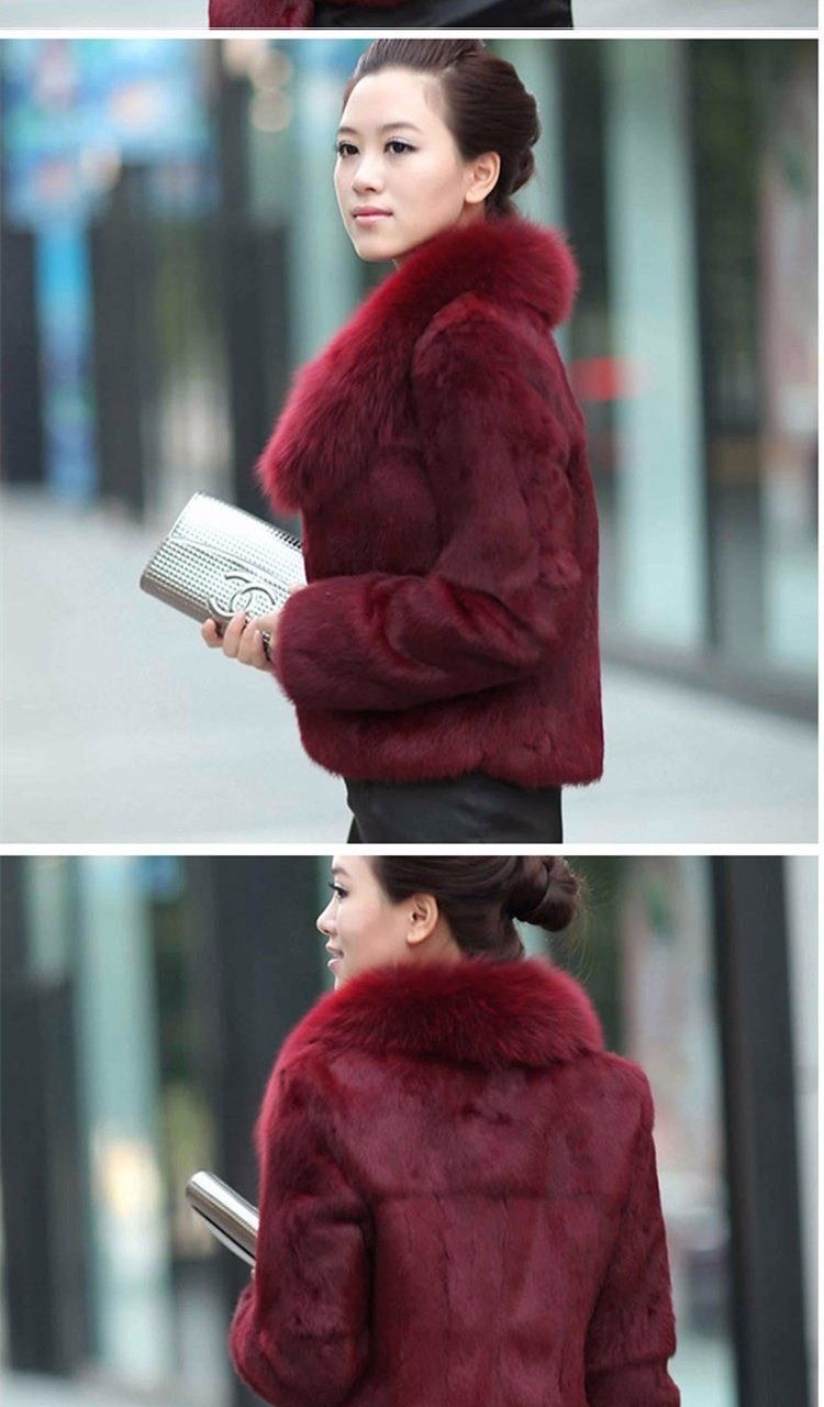 Haină scurtă din blană de iepure pentru femei, croială slim fit